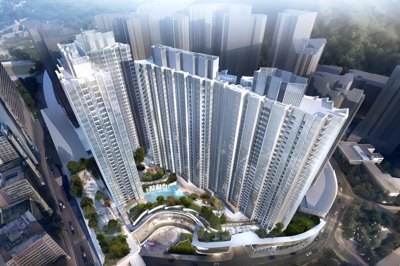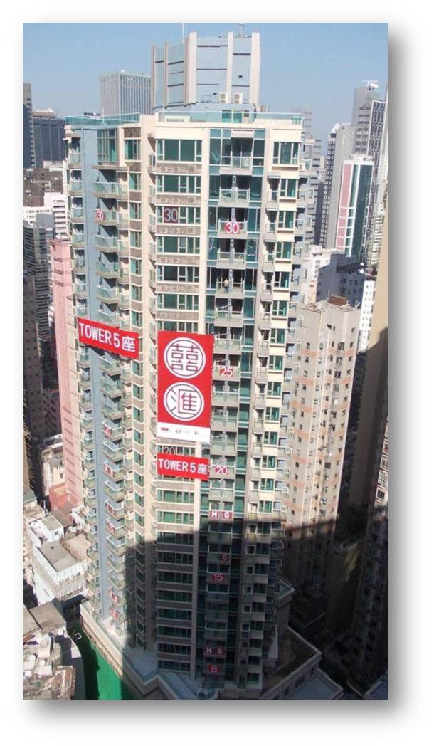 總建築面積136145平方米,包括7層平台,5座31層高大樓,共提供968個住宅單位。