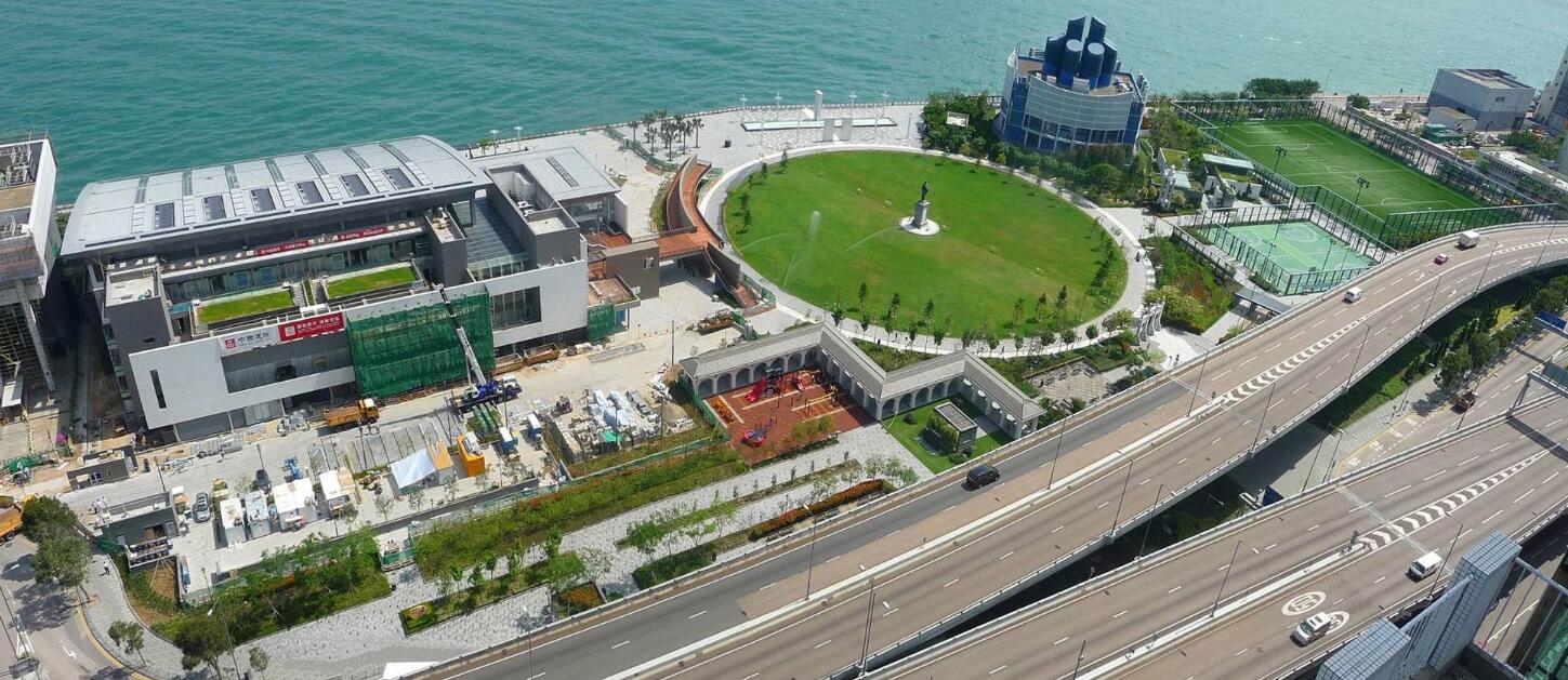 包括 1,000 座的多用途室內體育館丶兩個室內游泳池丶圖書館丶乒乓球室丶兒童遊戲室丶兩個可相通的活動室及一個可容納 450 人的社區會堂,以綠色建築為港島東居民提供休閒及康樂體育設施,在促進社區交流的同時減低能源消耗。