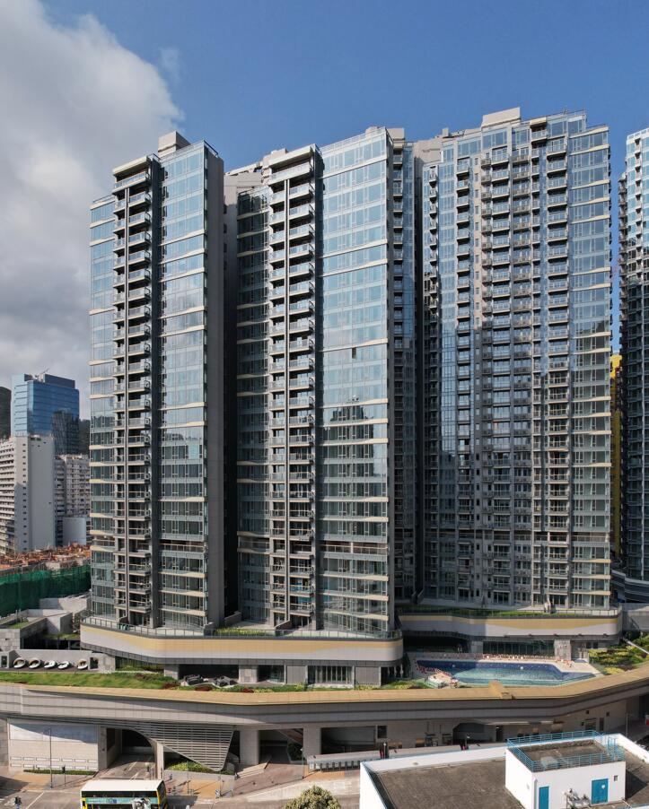 興建八座38~43層高的住宅大樓,座落於7層高的停車場及會所平台之上,共提供 812個住宅單位,地盤佔地面積為45,100m2,總建築面積181,200m2 (平台面積 約54,000m2,大樓面積約127,000m2),高度為176m。包括外欄、渠務及綠化工程。
