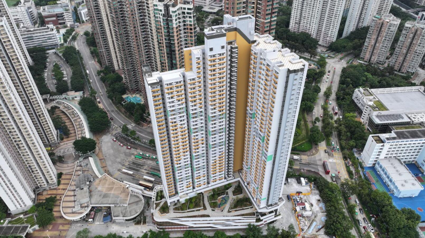 兩座45/47層住宅大樓、一座8層公共服務大樓以及一個地下停車場與戶外電梯。可提供2021個居屋單位及91個停車位