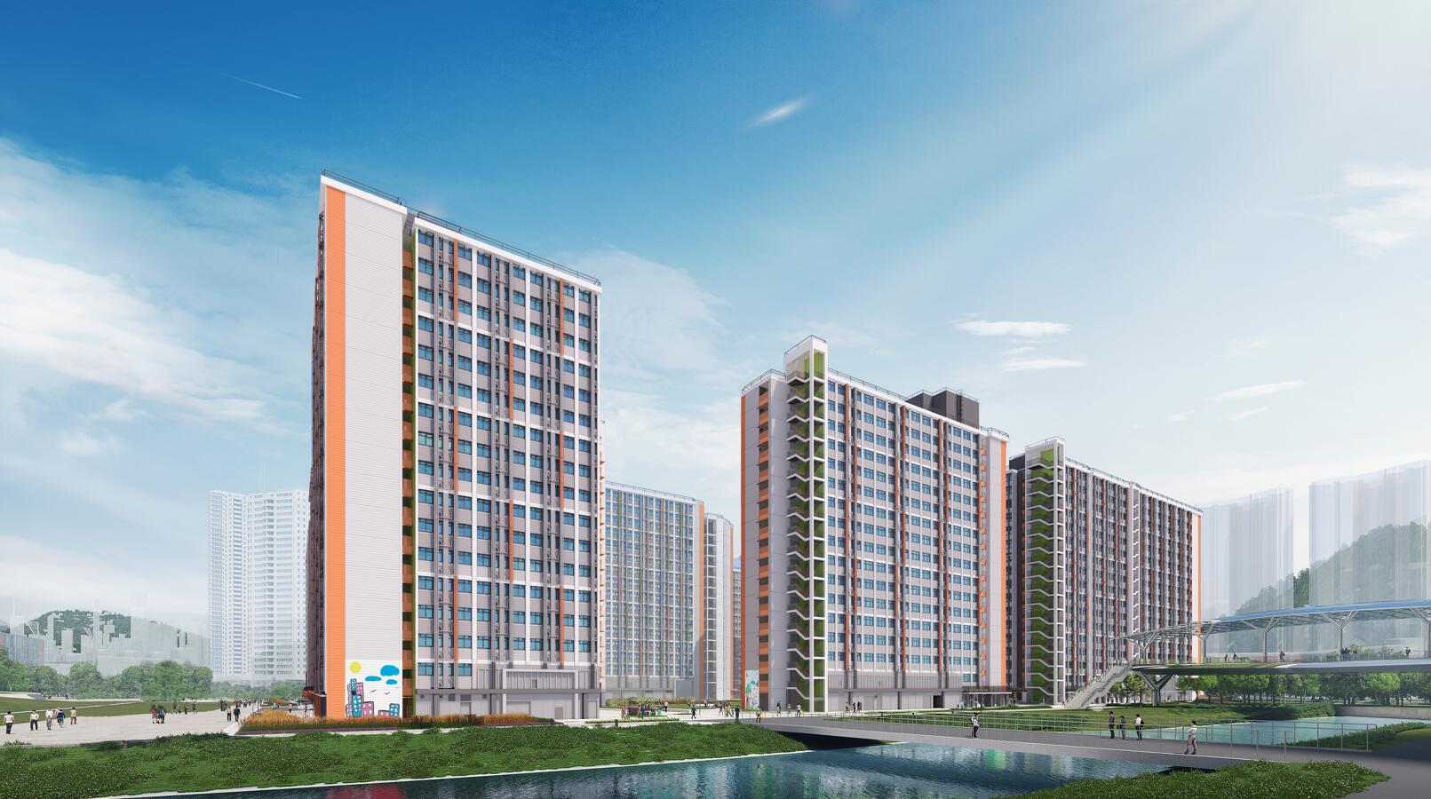 用鋼結構MiC形式設計及建造7座十七層高住宅建築,包括地基、外圍、渠務及綠化工程。項目佔地面積爲57,314m2,總建築面積爲320,547m2,共提供10,731個單位。其中,第一期為第3、6及7座共2,972個單位,第二期為第1、2、4及5座共7,759個單位。