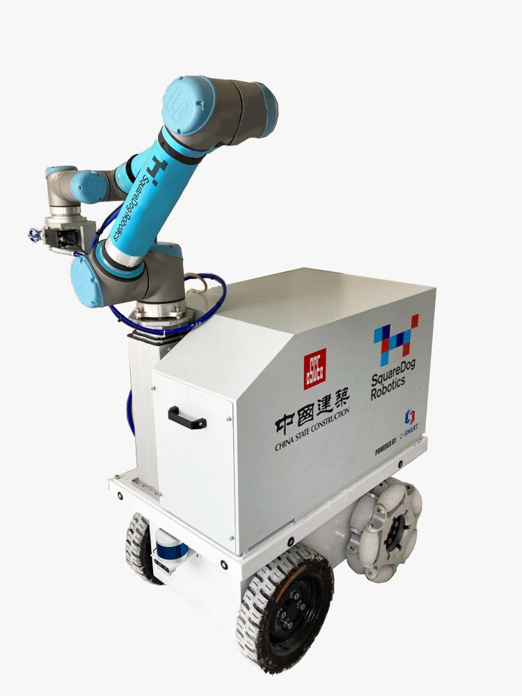 由中建香港及SquareDog Robotics共同研發的室內油漆噴塗機械人,加入建築信息模擬(BIM)技術,配合自動路徑規劃、室內導航技術等,可實現人手多機遠程靈活操作,自行穿梭於屋內,完成自動噴漆。即使在燈光昏暗環境下,也能夠準確完成內牆及天花的噴塗工作,施工質量穩定。