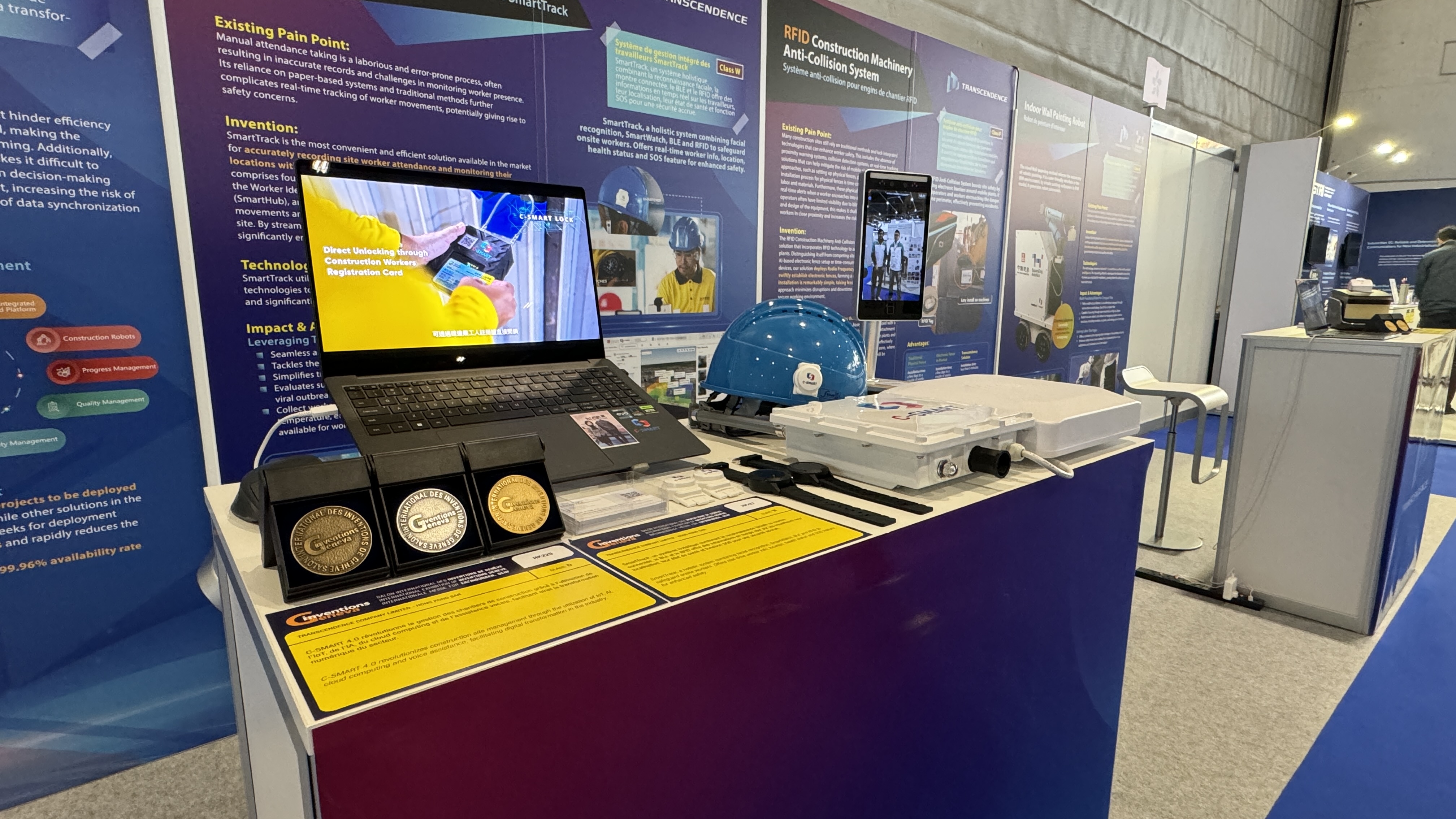 中建香港旗下的海宏技術有限公司,連續兩年代表中建香港參加日內瓦國際發明展,在2023年的活動中榮獲兩項銅獎,包括公司自家研發的C-SMART工程管理數字平台及與生產力局合作研發的C-S 自主多功能建築工地服務機器人。今年團隊再接再厲,收穫大滿貫,包括:
