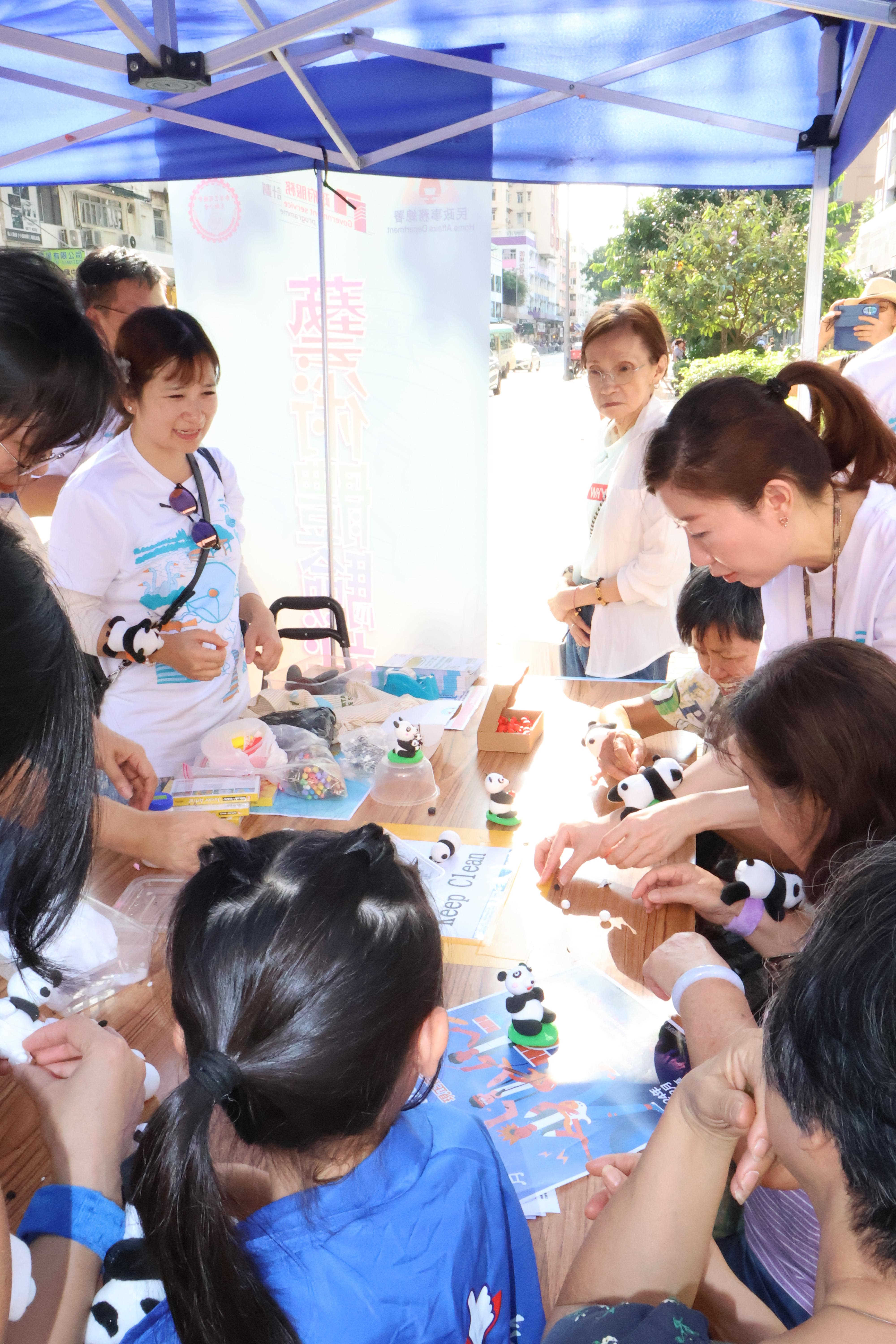 走進社區,義工隊協同元朗區議員李啟立在朗晴邨舉辦節慶活動,包括派發月餅及協辦藝術街站等,義工隊同街坊們共享中秋歡樂氛圍。當日義工活動特別是藝術街站的手工攤位吸引了大量長者和小童,大家一起動手學做熊貓黏土。