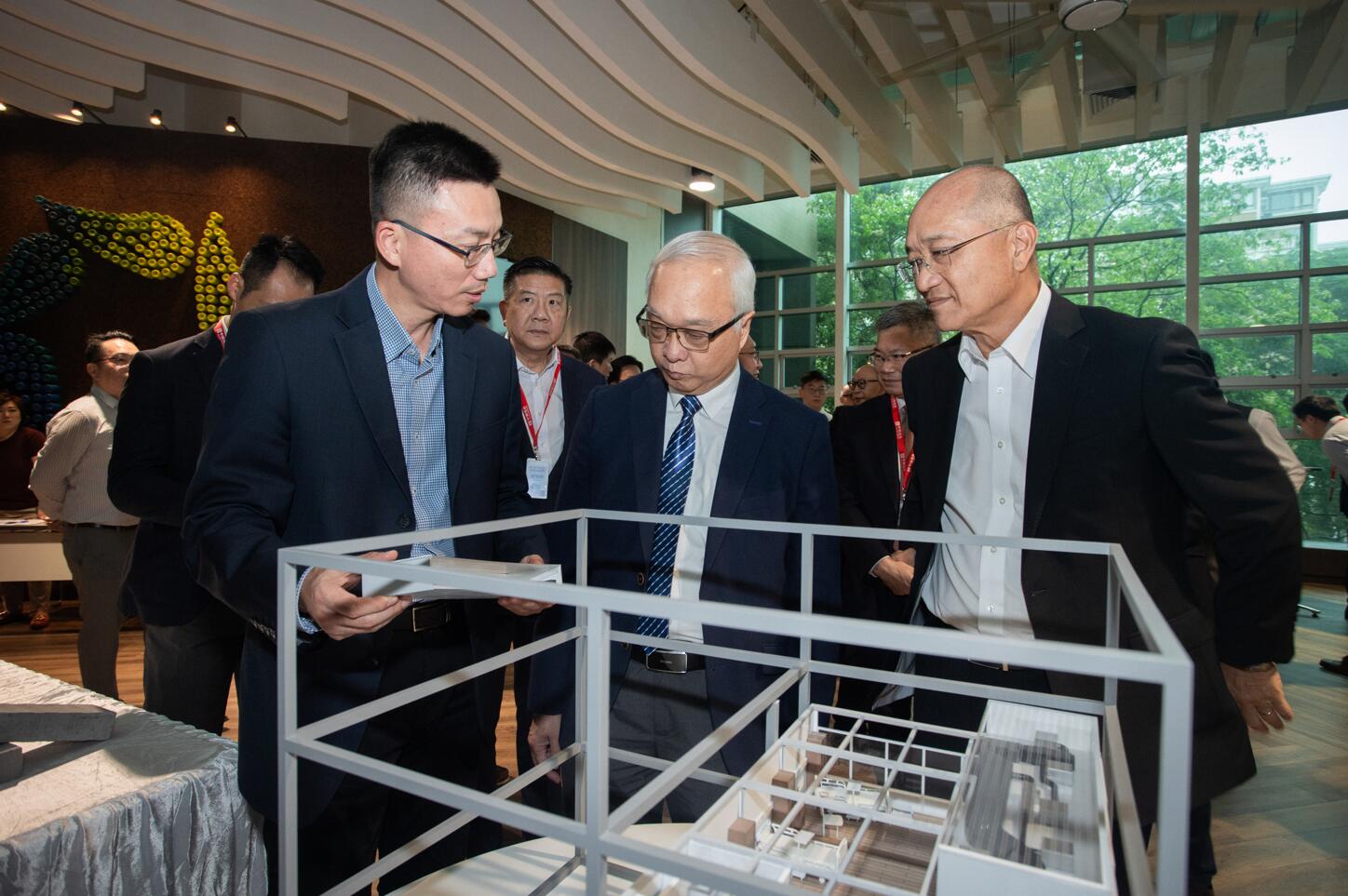 啟動禮現場設有多個展位,向嘉賓展示包括组裝合成建築法(MiC)、機電裝備合成法(MiMEP)、智能化工程管理平台及低碳建材等業界最新的解決方案。