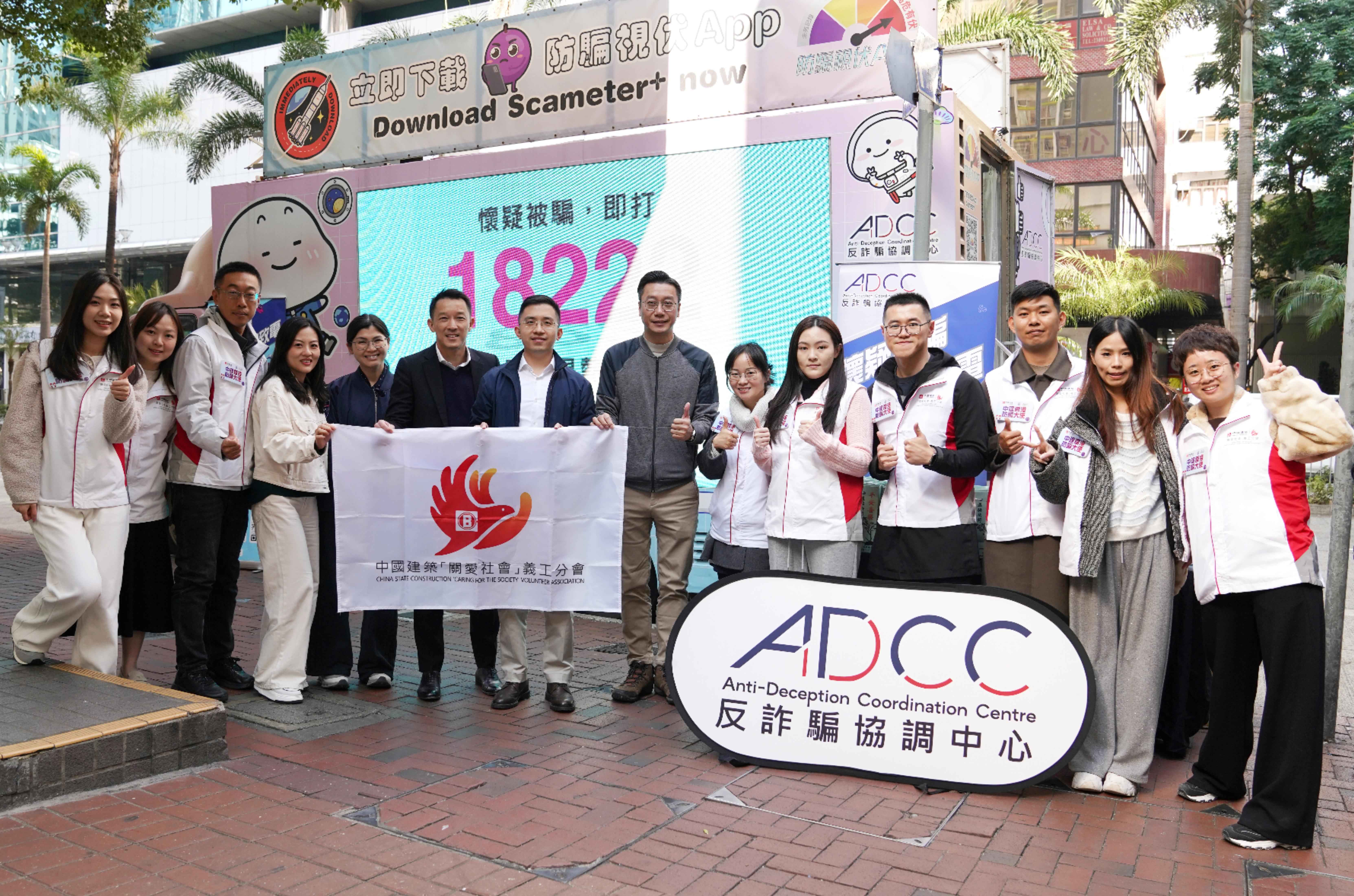 中國建築工程(香港)有限公司(下稱「中建香港」)與香港警務處反詐騙協調中心(下稱「ADCC」)持續深化協作,於2025年12月至2026年1月期間,在全港多地聯合開展7場「防騙宣傳車」「防騙中醫義診」等系列公益義工行動,以創新形式向市民普及防騙知識,築牢社會防騙防線。