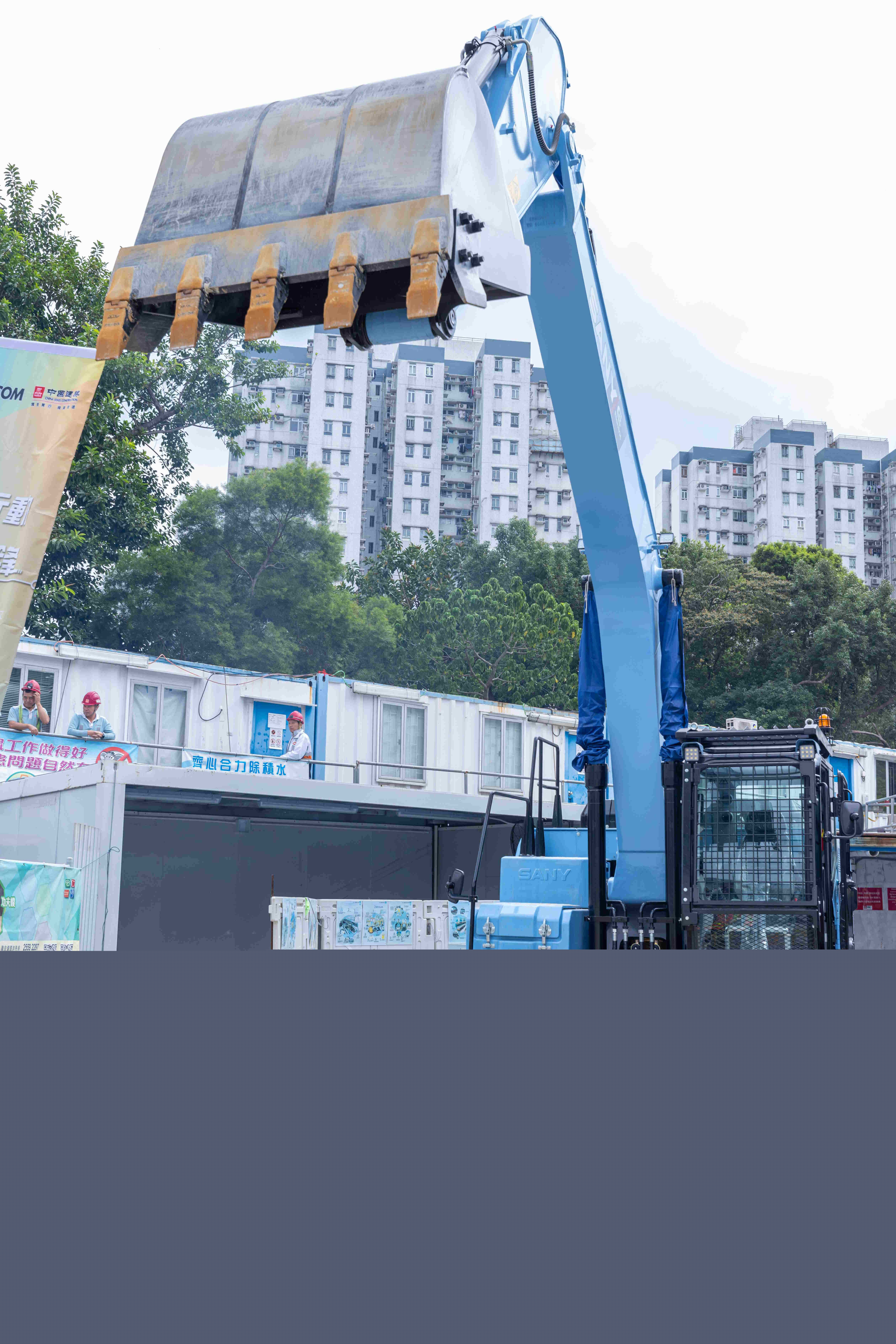 為響應國家「3060」雙碳目標以及香港特區政府的《香港氣候行動藍圖 2050》,中國建築工程(香港)有限公司(「中建香港」,以下簡稱「公司」)一直致力於推動建造業可持續發展,今年10月率先宣佈啟動「清潔能源計劃」,宣佈三大承諾,其中之一即是全面推動地盤用車電氣化。11月7日,中建香港首次引入三一騰飛的電動挖掘機和電動起重機,並舉行交付儀式。