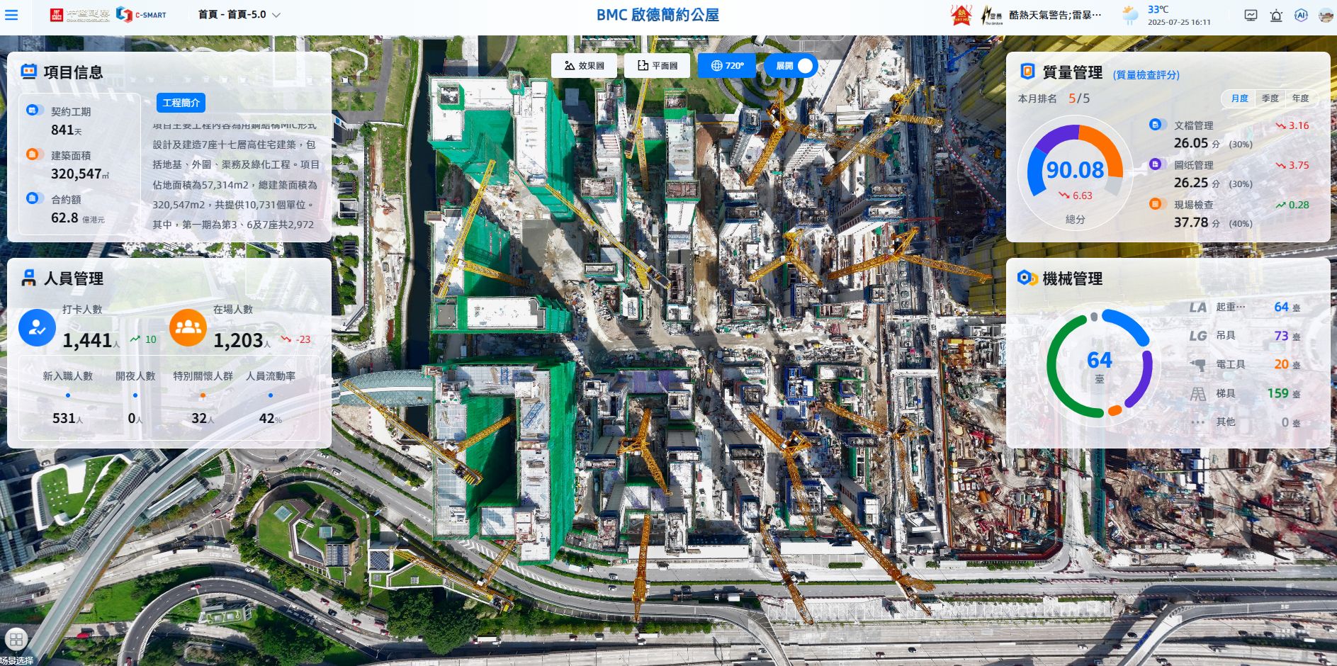 工程管理人員通過C-SMART 工程管理數字平台,以數字化方式管理地盤的人員、物資、進度、流程等,大大提升管理效率。