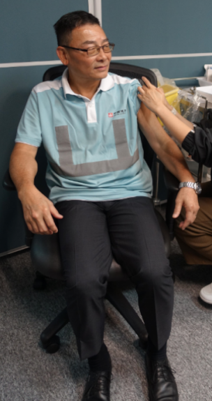 為響應聖母醫院發起的「齊打針 防流感活動」,九龍聖母醫院重建項目工程團隊成員一起注射流感疫苗,加強對員工的健康保障,減少流感傳播。