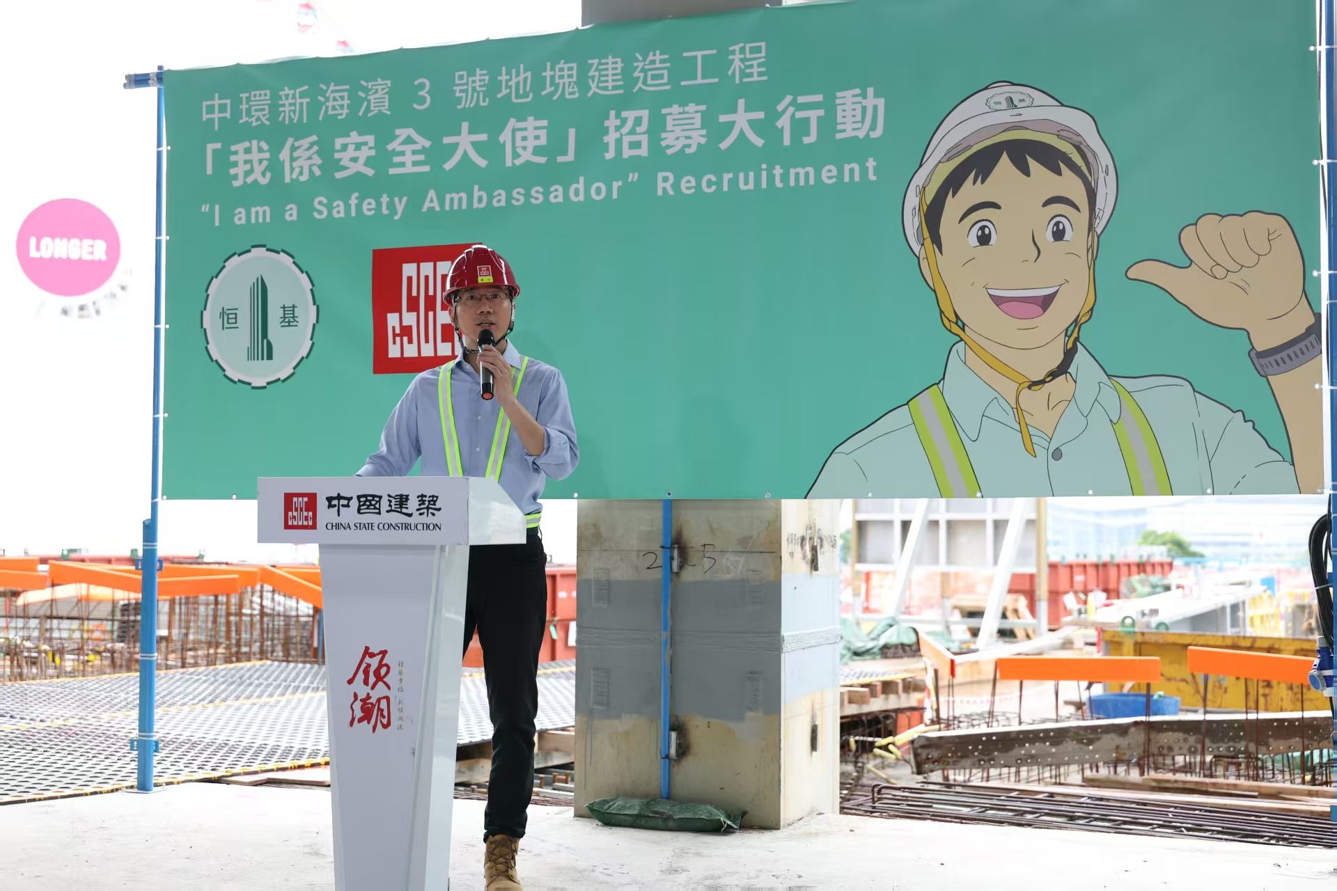 由中國建築工程(香港)有限公司(以下簡稱「中建香港」)和恒基兆業地產有限公司(以下簡稱「恒基地產」)聯合舉辦的「我係安全大使」啟動儀式,早前已於中環新海濱 IL9088 發展項目(3A 地盤)順利舉行。計劃旨在通過獎勵方式,提升工友的安全意識,鼓勵工友彼此關愛守望,共築地盤的安全工作環境。