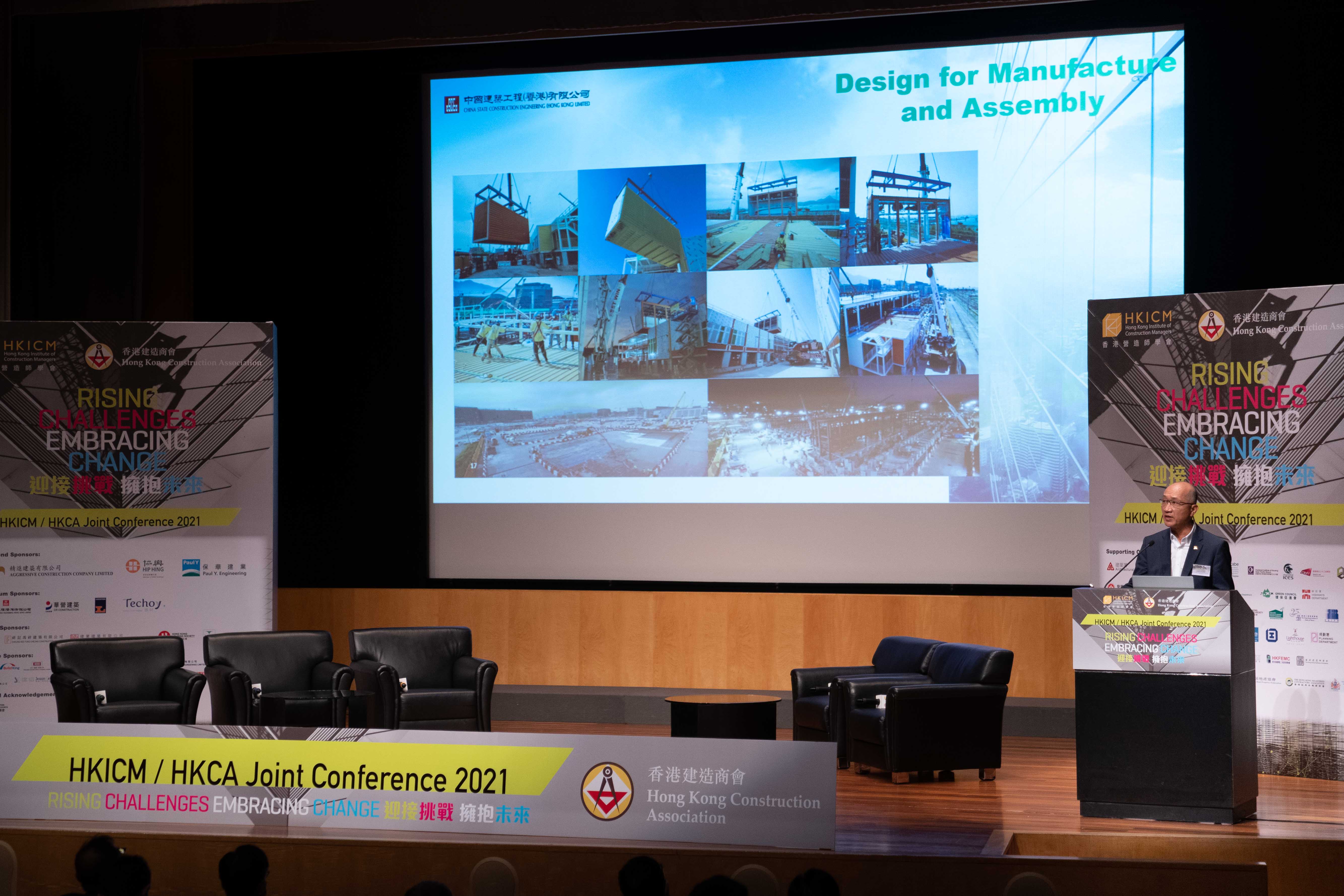 中國建築工程(香港)有限公司(「中建香港」,以下簡稱「公司」)應邀出席由香港營造師學會及香港建造商會合辦,主題為“Rising Challenges‧Embracing Change”的2021研討會,並作主題演講。大會邀得多位業界翹楚及專家學者擔任演講嘉賓,探討建造業新趨勢和政策,並對香港的情況進行案例分析。