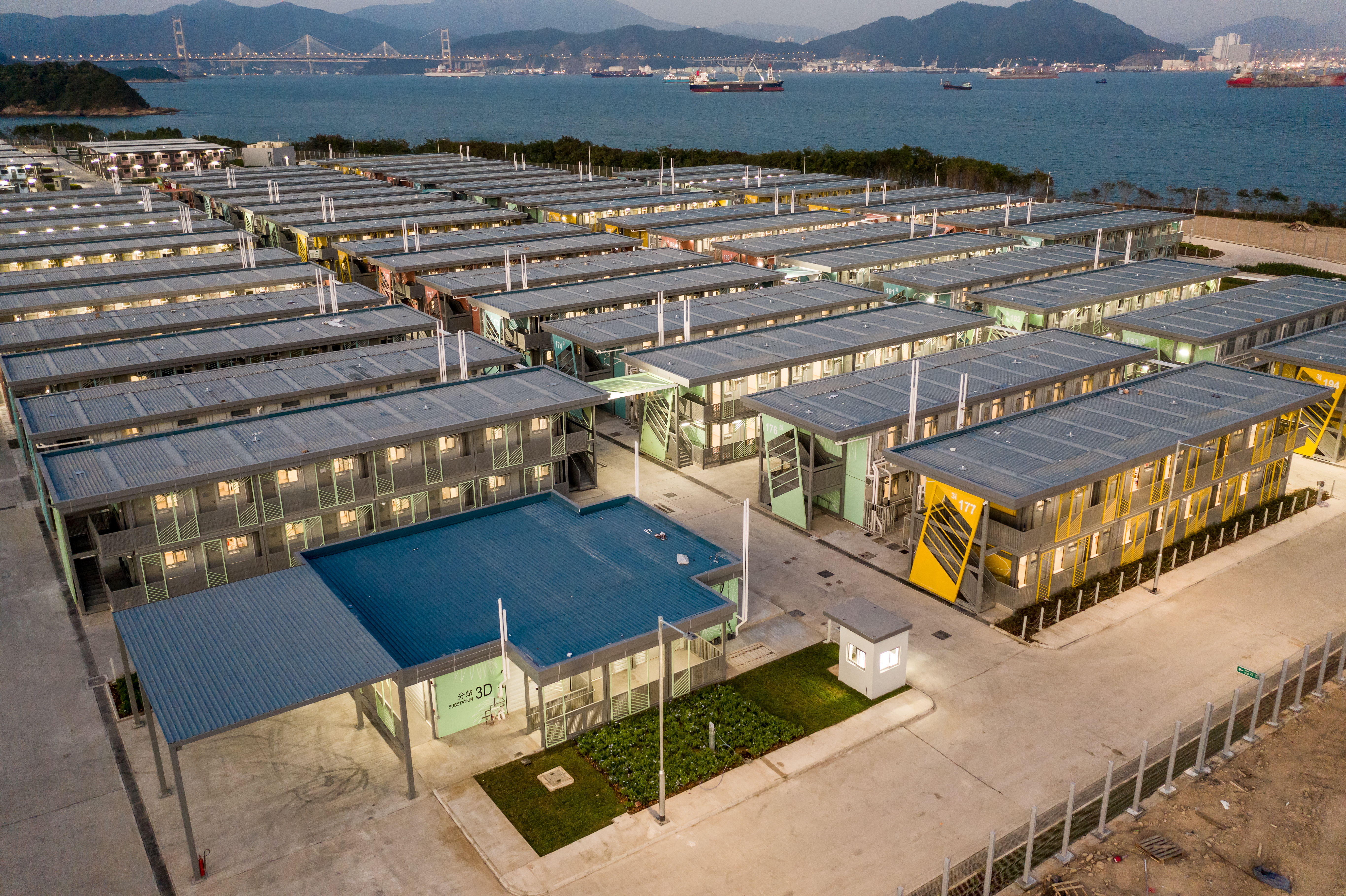 圖片1: 鯉魚門防疫隔離中心(A區)為本港首個採用「組裝合成」技術完工的工程項目,整體工程只用了25天,便興建了118間隔離單位和附屬設施以及周邊景觀工程。