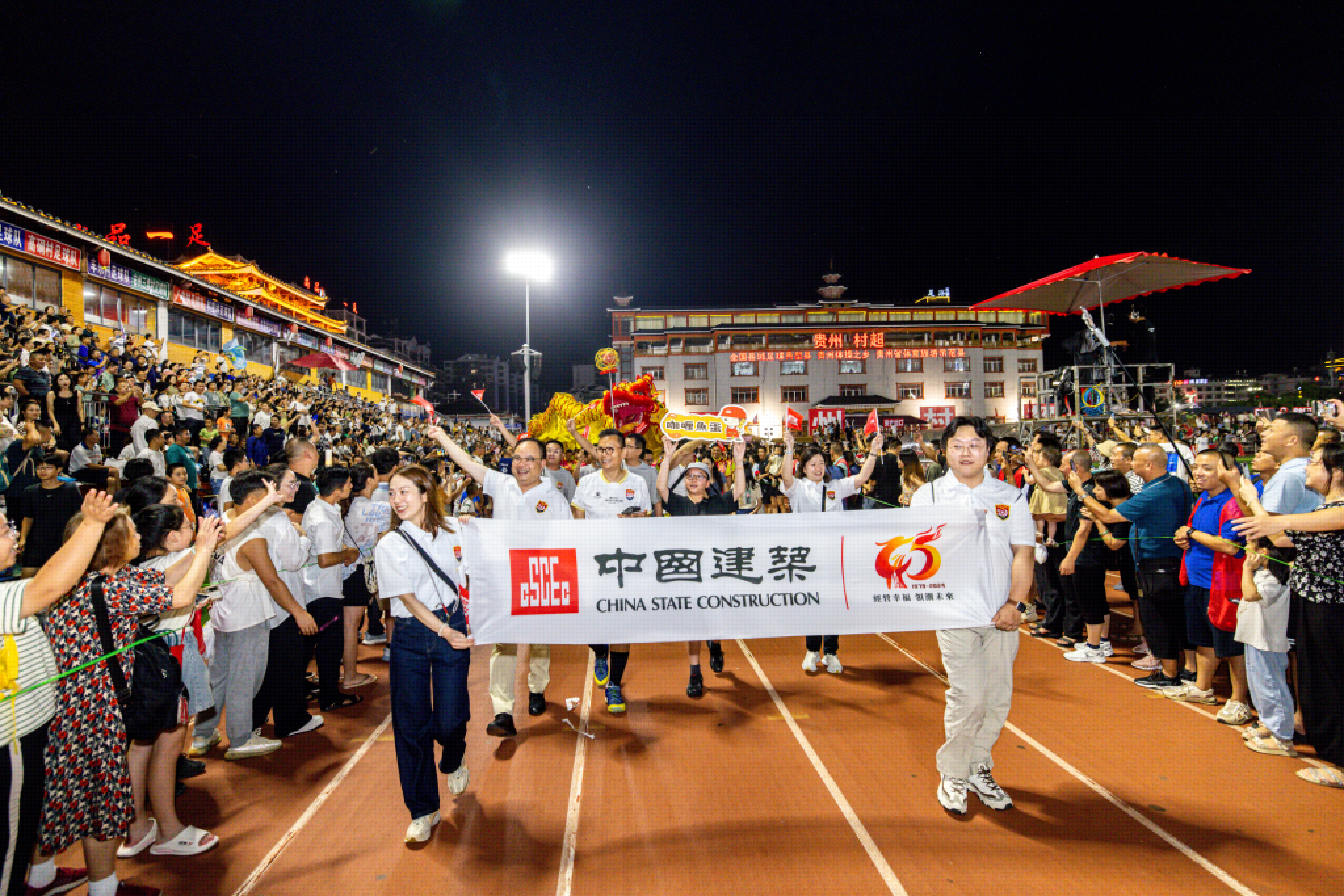 在其後舉辦的貴州村超——全國美食非遺友誼賽“超級星期六”活動中,中建香港代表團與特邀參賽的香港龍獅團,以及中建國際投資(貴州)有限公司員工共同組成百人巡游隊,向來自全國各地的參賽隊伍及觀賽觀眾展現公司風貌和香港民俗。