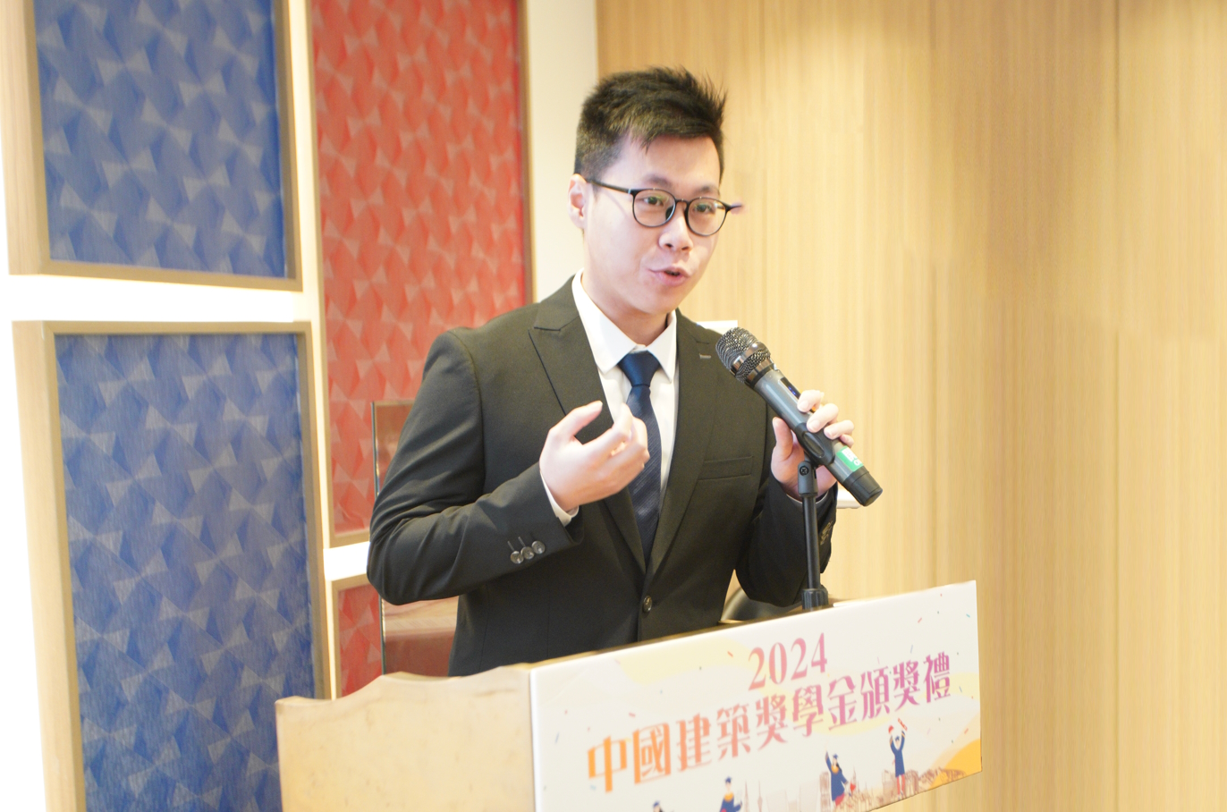 香港理工大學屋宇設備工程學大學四年級學生黃樂軒作為學生代表發言,他表示,中建香港頒出的獎學金是對獲獎學生學習表現的認可,並減輕了他們的經濟壓力。他同時分享,自己很榮幸能夠加入中建香港團隊,今年畢業後他將以見習工程師身份加入醫院項目團隊。希望將來可以有更多機會感受團隊協作的力量,參與大型民生項目建設。