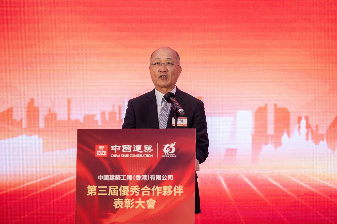 頒獎環節結束後,孔祥兆再次向合作夥伴致謝並強調,優秀的合作夥伴不僅在危急關頭攜手並進,更在商業拓展中相互成就。過去一年,中建香港與各位精誠合作、共贏共榮,共同創造了一個又一個輝煌的成就。如今,香港正處於“由治及興”的關鍵階段,經濟發展注入了新動能,建造業駛入高速發展的歷史快車道,中建香港內強實力,外促布局,與各優秀合作夥伴深化合作、攜手共進,共同譜寫香港建造業的新篇章。