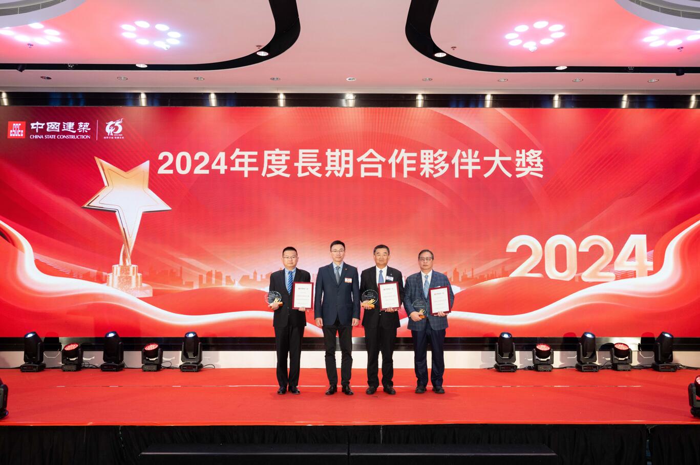 另,華潤建材科技、海興材料有限公司、環星鋼鐵有限公司獲評「2024年度長期合作夥伴大獎(供應商類別)」。華潤建材科技代表發言指,希望在基础设施建设、城市更新等领域,继续成为中建香港最坚实的合作伙伴,共同打造更多的地标性建筑。