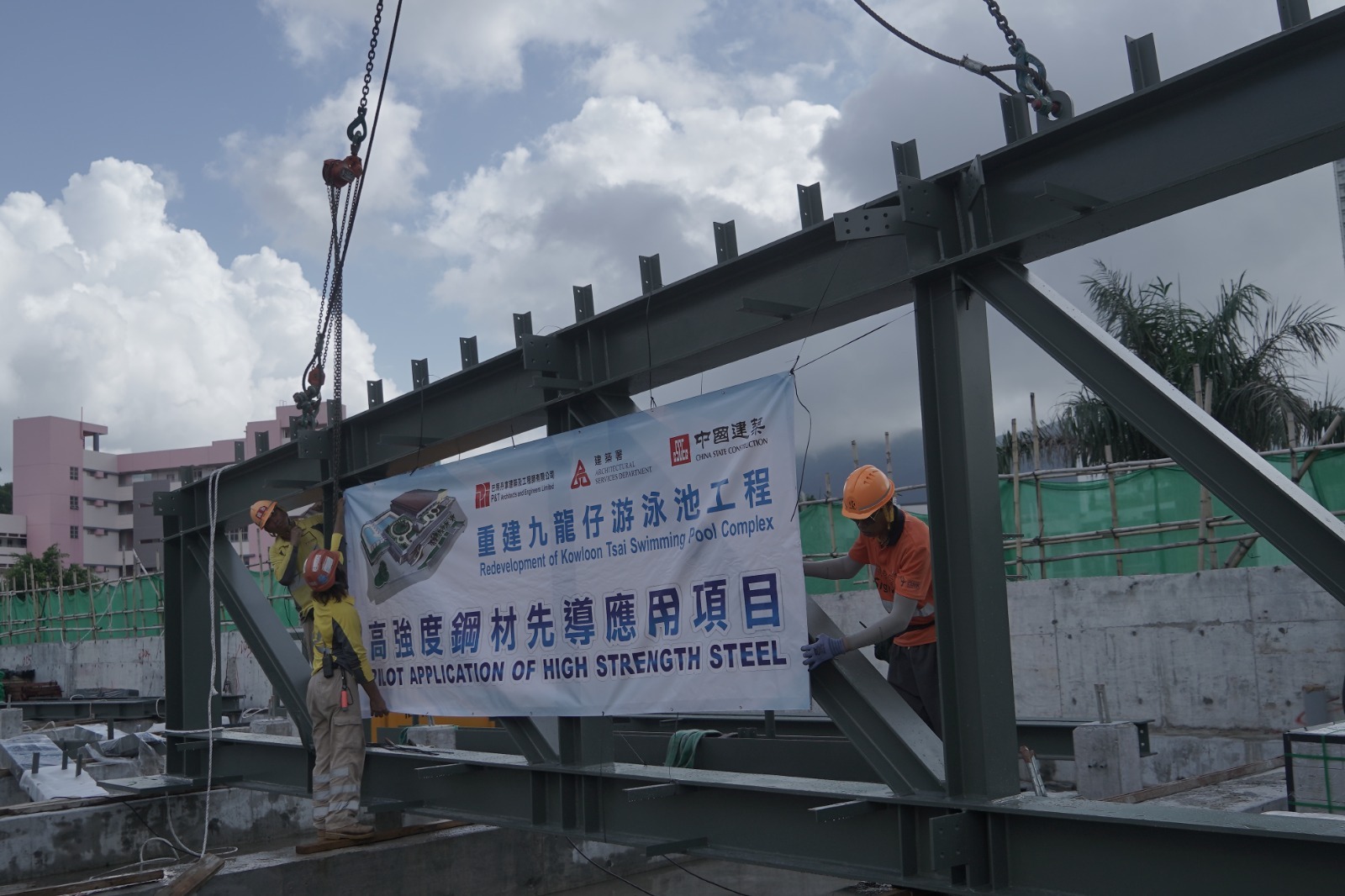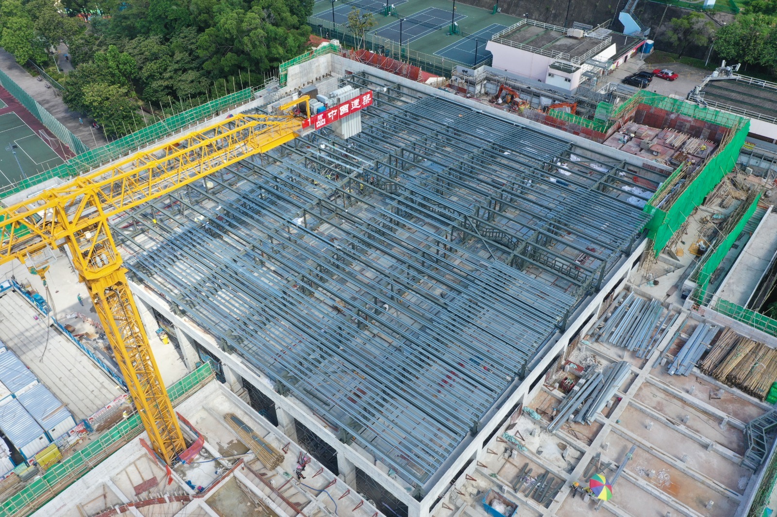 圖5 – 九龍仔公園游泳池重建項目屋頂S690鋼桁架施工照片