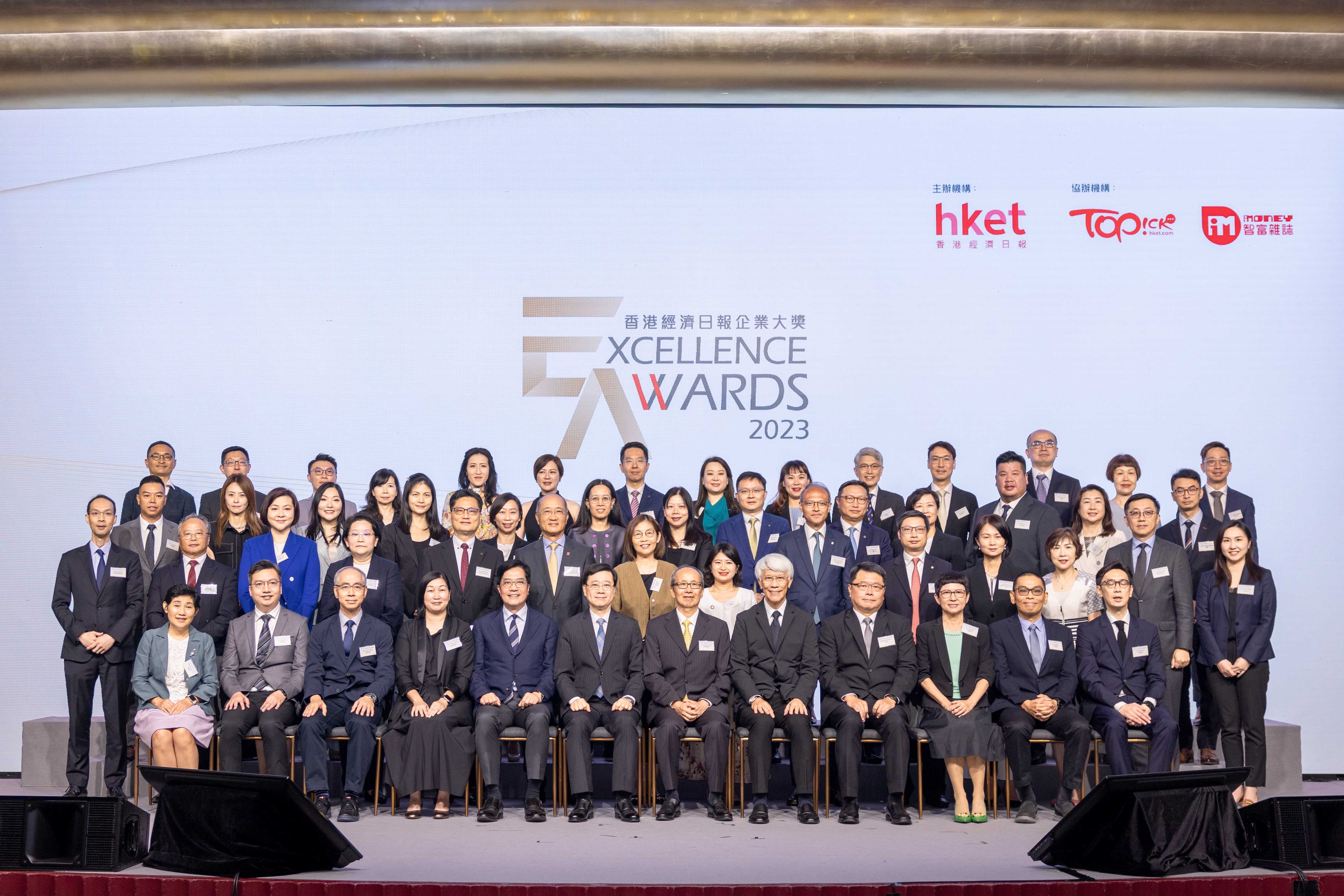 香港特區行政長官李家超出席典禮並與獲獎企業代表合影留念。