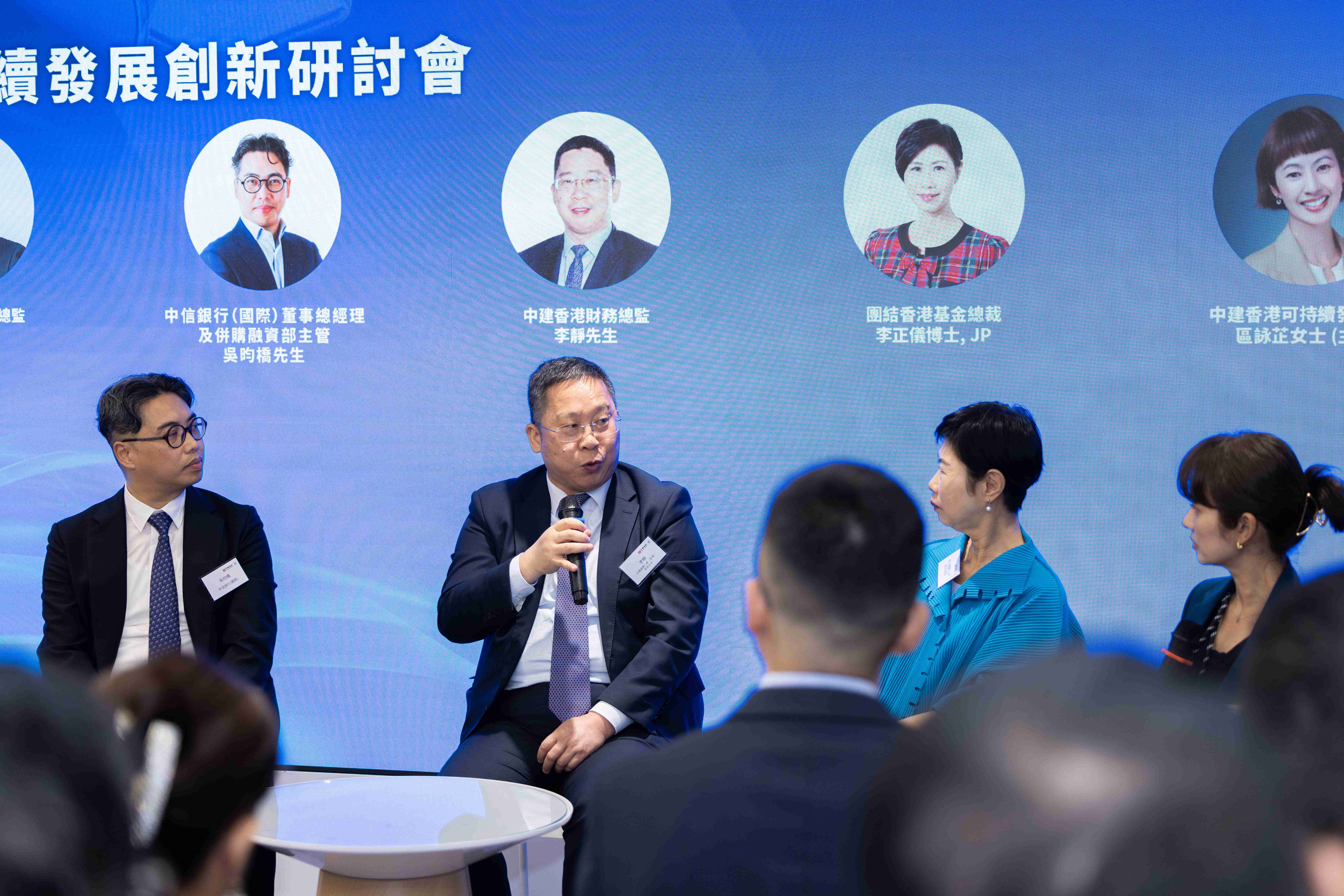 中建香港財務總監李靜(中)於中建香港舉辦的「2024 香港可持續發展創新研討會」擔任講者
