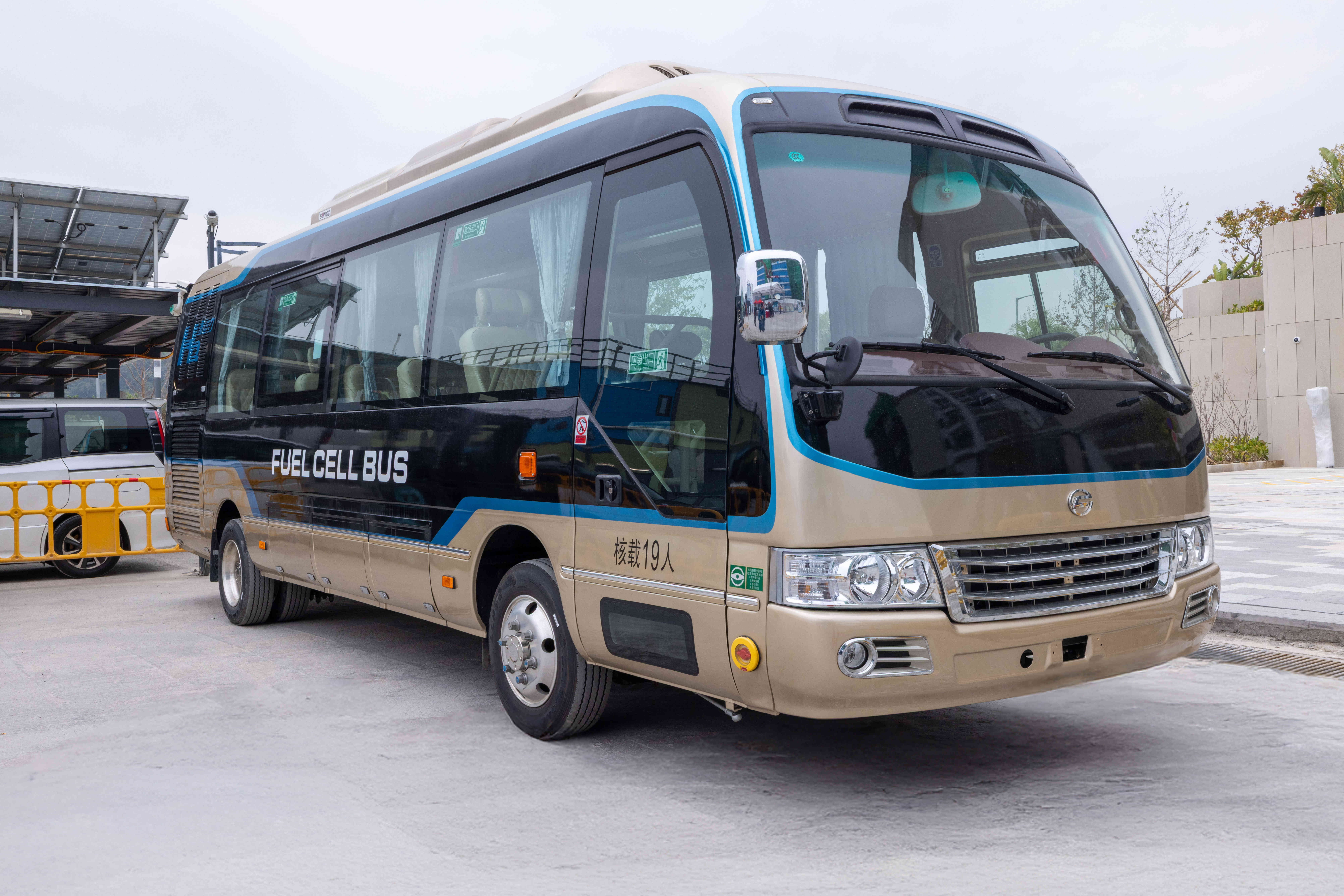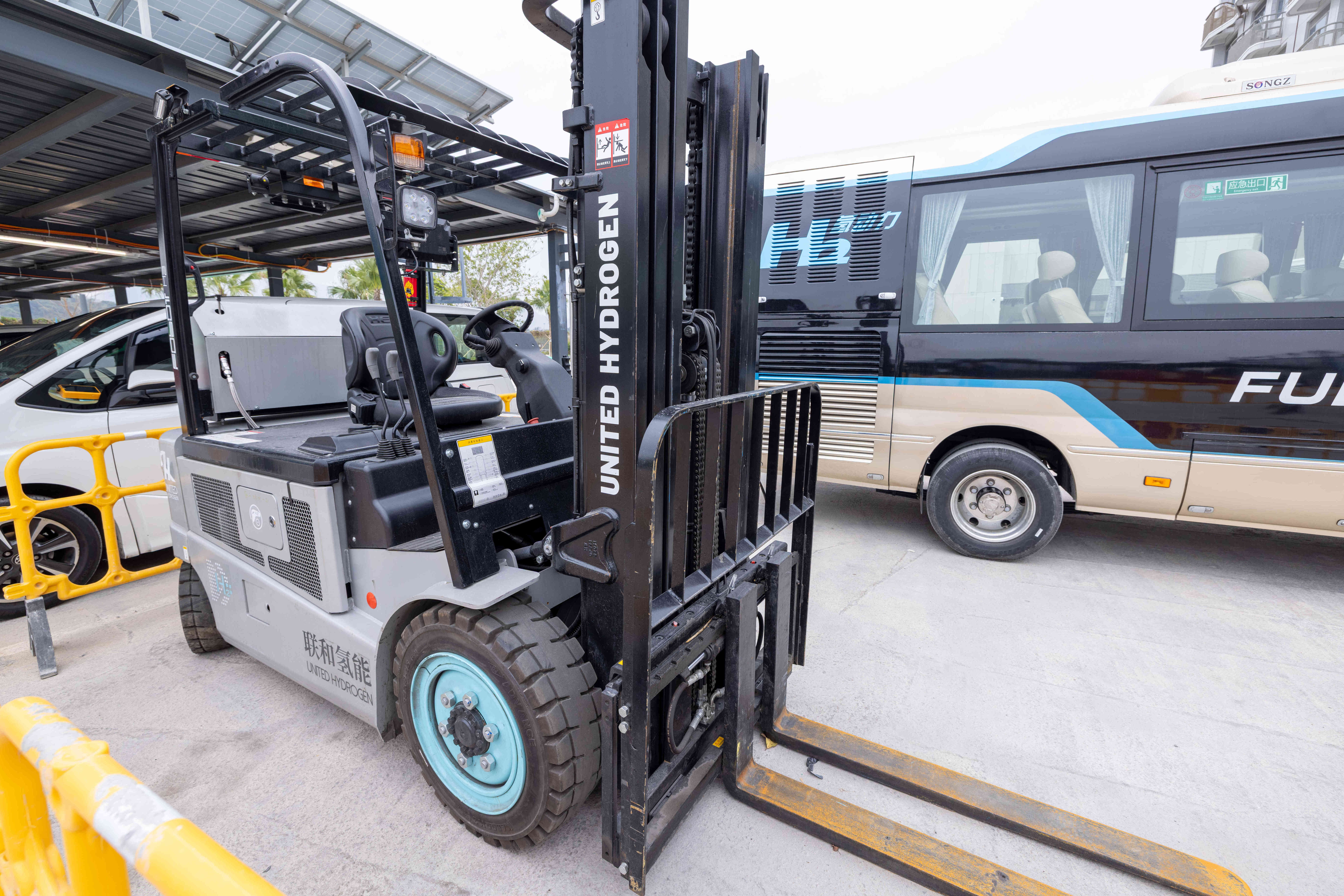 左圖:氫燃料電池「叉式起重車」;右圖:氫燃料電池小巴