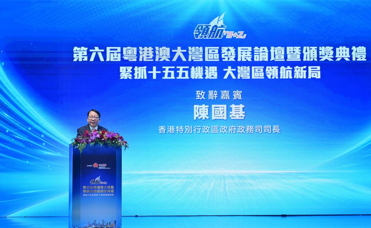 陳國基司長在致辭中表示,「過去數年,在國家的大力支持下,粵港澳三地攜手努力,在推動大灣區建設取得豐碩成果。面對複雜且不斷變化的環境,香港會繼續在國家發展藍圖中抓緊我們的優勢定位,繼續發揮『一國兩制』下的優勢,配合『十五五』規劃,把握大灣區機遇,推動高水準開放和創新」。他還寄語獲獎者,「期待你們繼續帶動更多、更大的力量,共建灣區新未來。」