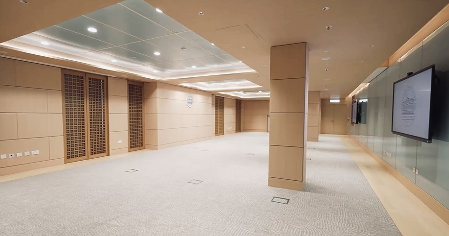 作為設計與建造的總負責方,中國建築工程(香港)有限公司(下稱「中建香港」)嚴格遵循「保育優先、最小干預、可逆改造」原則,組建了以28名資深工匠為核心的專業保育團隊,運用全面測繪與現代工程技術,成功修復了包括前槍械庫、前羈留室、前瞭望台等在內的近20項(類)歷史細節;耗時近4個月,精心研發出5套不同尺寸與安裝方法的加固方案,在「不傷筋骨」的前提下確保古老建築能夠安全承載現代功能需求;巧妙將中國官窯的釉色紋理融入建築設計方案,營造出「流動的文化穹頂」和「瓷心木框」 的中華文化意向,與世界調解走廊牆上用《關於建立國際調解院的公約》6種文本的語言闡述的調解核心價值遙相呼應,展現了文化底蘊與國際視野的完美融合。