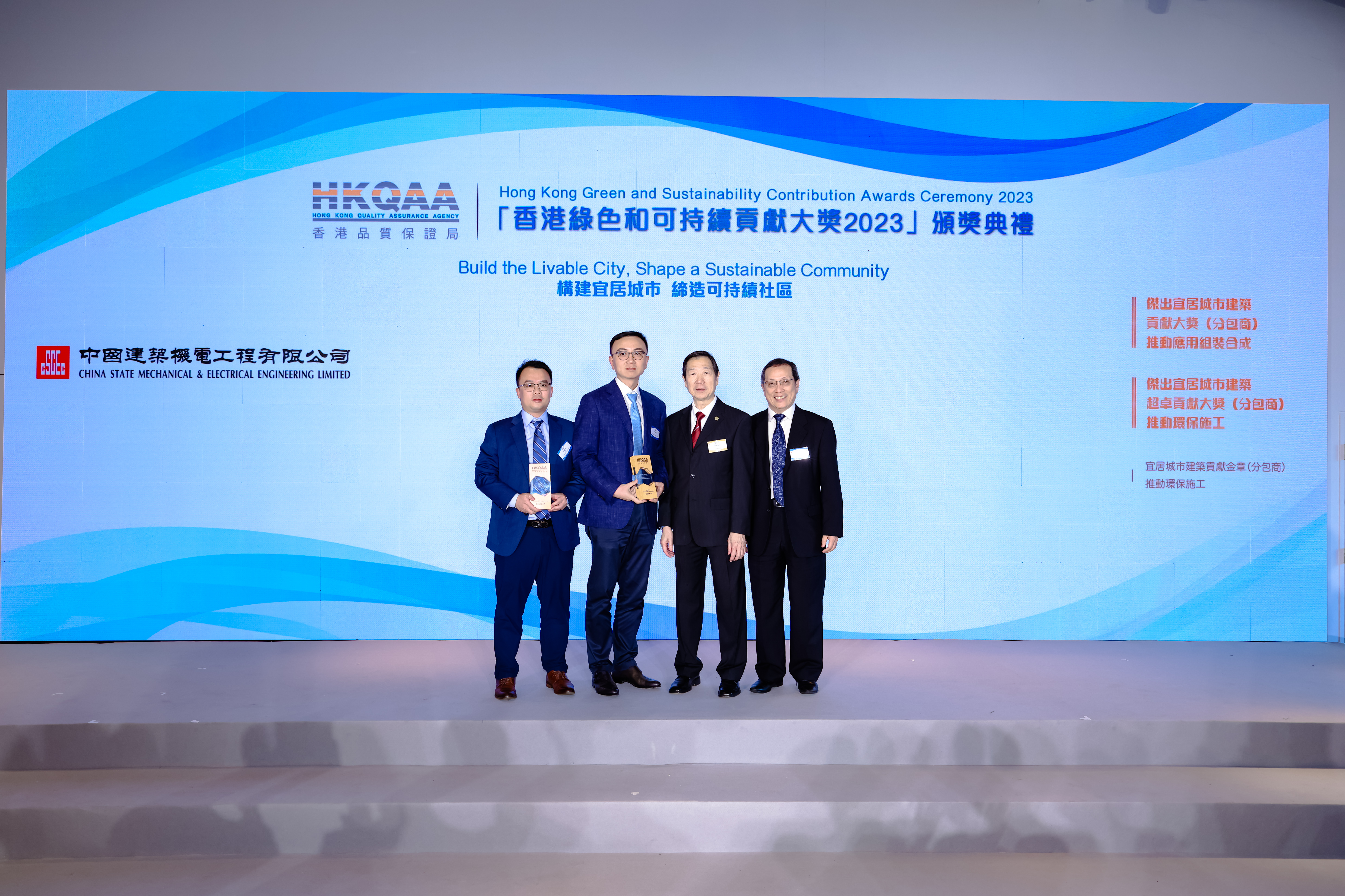 中國建築工程(香港)有限公司旗下子公司中國建築機電工程有限公司在「香港綠色和可持續貢獻大獎 2023」獲得最高級別獎項「傑出宜居城市建築超卓貢獻大獎——推動環保施工」。