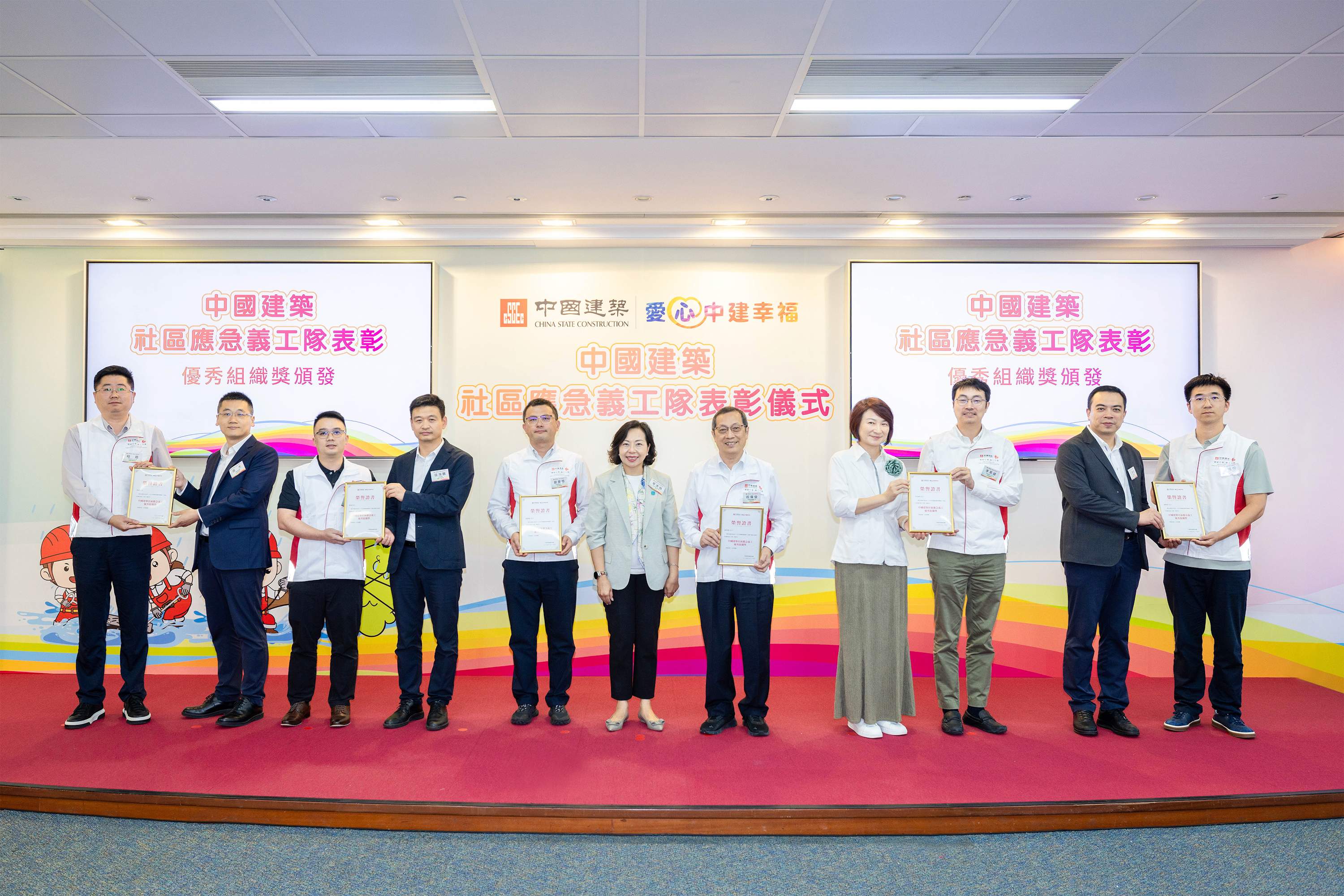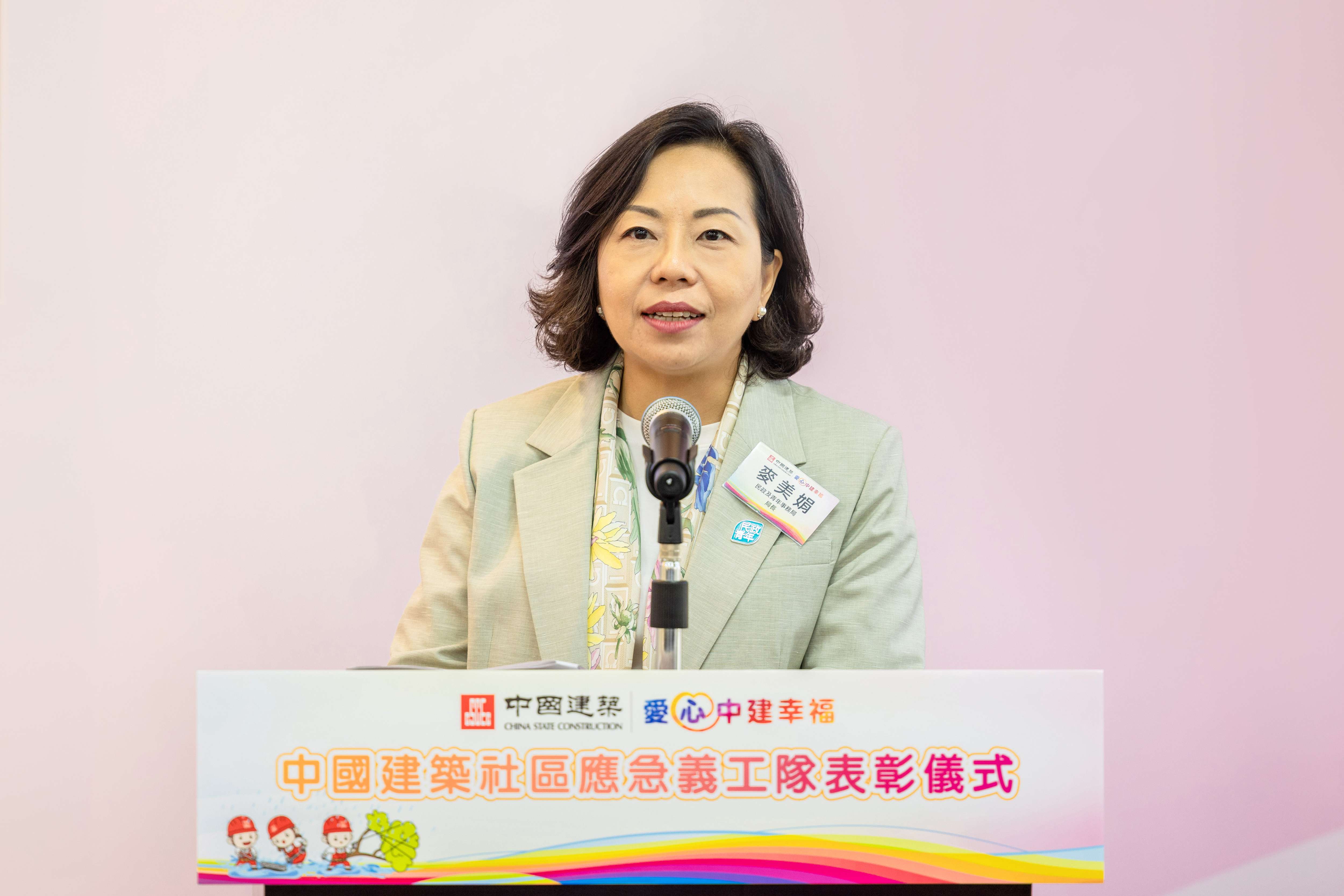 典禮上,民政及青年事務局、民政事務總署及、相關地區民政事務專員,以及李慧琼議員、地區團體、學校及業主立法法團等各界代表分別向中國建築社區應急義工隊致感謝信。