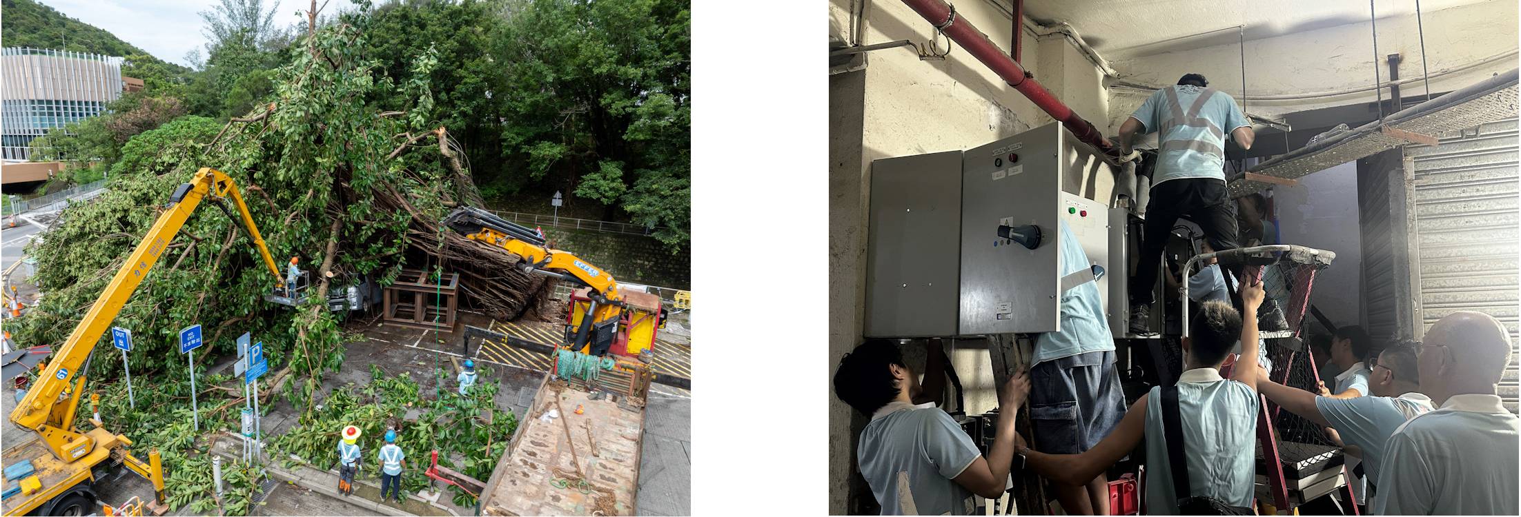 2025.7.23颱風摧毀沙田古榕,義工隊火速清障 2025.7.27義工隊馳援益豐大廈電力搶修