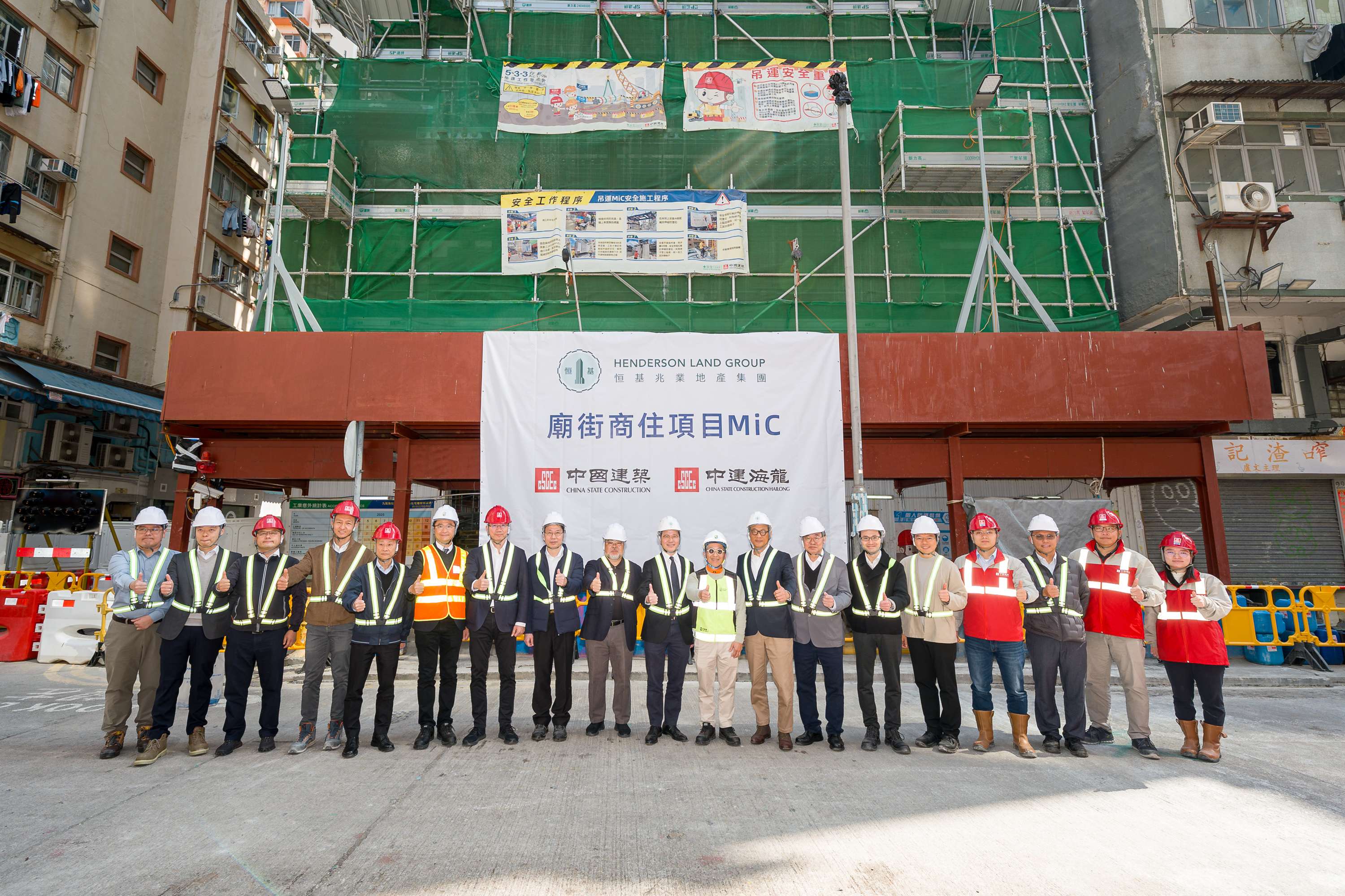 近日,香港建造業議會(CIC)主席何安誠教授聯同屋宇署代表以及行業專家,專程到訪中國建築國際集團(下稱「中國建築國際」)旗下中國建築工程(香港)有限公司(下稱「中建香港」)承建的油麻地廟街16-20號綜合住宅發展項目(下稱「廟街項目」),實地考察全組裝合成(MiC)技術的創新應用。CIC主席何安誠教授稱讚該項目為「香港私人住宅MiC的標桿項目」,標誌著MiC技術在私人住宅領域的突破性進展。