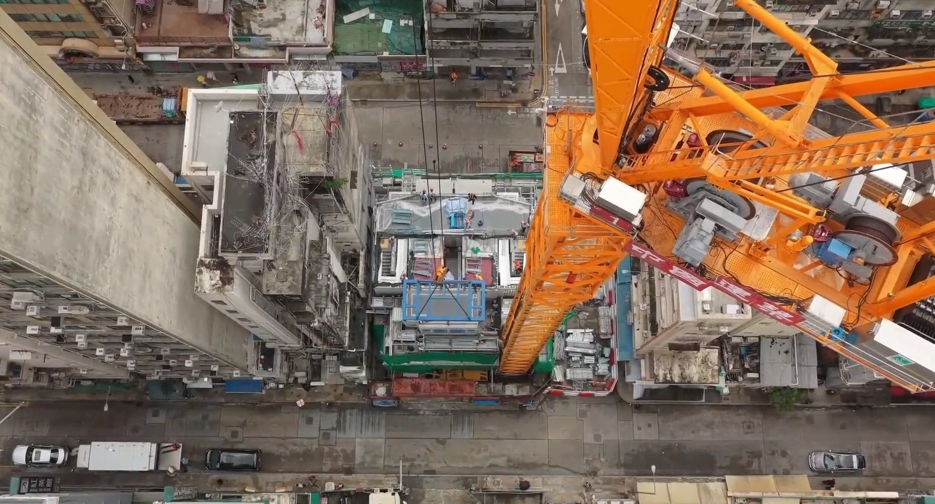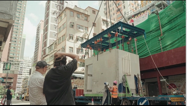 该项目地盤面積約209.4平方米,主體建築與毗鄰大廈距離僅0.9米,且緊鄰一座有161年歷史的天后廟,施工空間十分有限,難以使用大型機械。為此,項目特別採用定制的塔吊,最大起重量達50噸,可吊裝約39噸的MiC模塊,並配合實時追蹤與運輸調度,提升物流效率。截至目前,共完成143件MiC模塊的市區運輸與現場吊裝,未對周邊交通及商業活動造成影響。